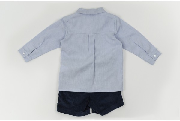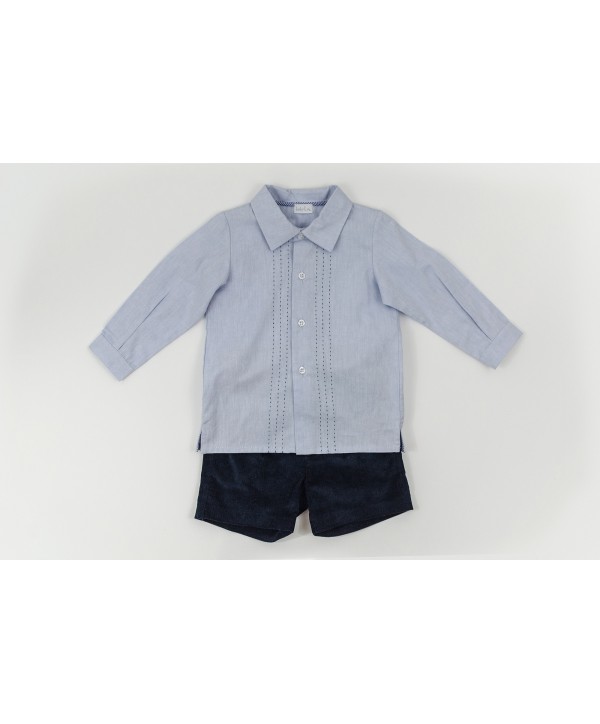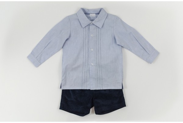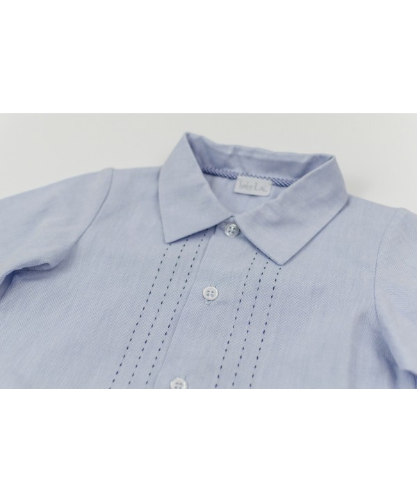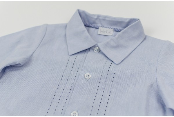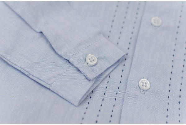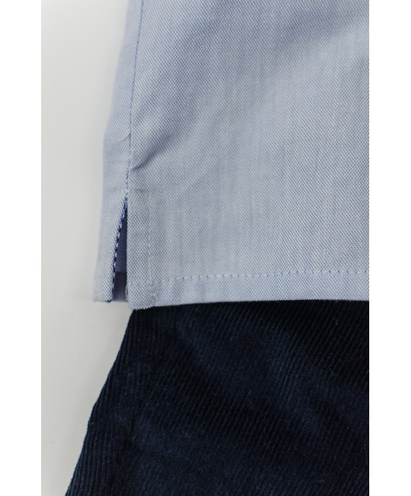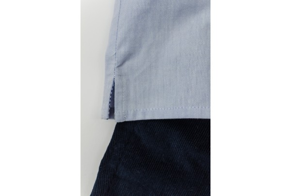 Camisa azul com pesponto.